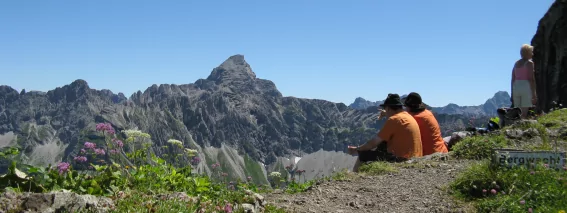 Am See linkshaltend der Beschilderung folgend zum Rubihorn. Die letzten Meter sind leicht ausgesetzt und etwas schwieriger. Aber man wird mit einem herrlichen Rundblick über die Allgäuer Alpen belohnt. Bei schönem Wetter und guter Fernsicht können Sie den Bodensee erkennen. Falls Sie Ihre Tour erweitern möchten, können Sie vom Rubihorn aus über das Niedereck und den Roßbichl zur Mittelstation Seealpe der Nebelhornbahn und von dort aus ins Tal gelangen.