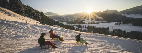 Ein rasanter Winterausflug und unvergessliches Erlebnis auf 3 km Naturrodelbahn vom Berggasthof Gaisalpe bis nach Reichenbach.