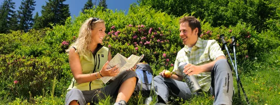 Dort können Sie wählen, ob Sie den wildromantischen neuangelegten Tobelweg, mit seinen naturbelassenen Staustufen und den Steintreppen bevorzugen (für Kinder sehr interessant) oder über die Fahrstraße weiter an Wiesen und Viehweiden vorbei. Nach ca. 45 Minuten erreichen Sie die Gaisalpkapelle, von dort aus sind es nur noch ein paar Minuten bis zur Gaisalpe. Die Fahrstraße ist auch für Kinderwagen und motorisierte Rollstühle geeignet. Auf der Gaisalpe erhalten Sie auch gerne weiter Tipps für Ihre Wanderungen.